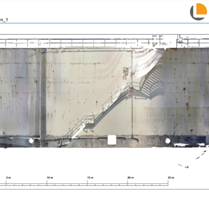 - Acquisizione dati: Il sistema Laser Scanner 3D rileva la superficie del serbatoio generando una nuvola di punti completa e dettagliata.