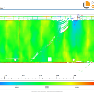 - Acquisizione dati: Il sistema Laser Scanner 3D rileva la superficie del serbatoio generando una nuvola di punti completa e dettagliata.
